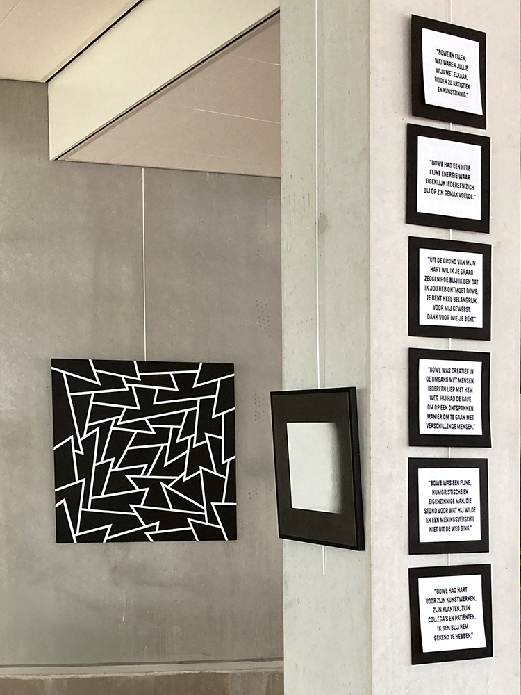 Bowe maakte geometrisch-abstract, minimalistisch werk, variërend van lichtobjecten tot grafisch werk in zwarten en witten, met hier en daar een vleugje kleur. Kenmerkend zijn de subtiliteit, het oog voor detail en de perfectie waarmee hij zijn creaties gestalte gaf. In de zomer van 2025 heeft Museum De Tiid, in samenwerking met Ellen Floris, zijn lief, een eerbetoon aan kunstenaar Bowe Roodbergen gebracht in de vorm van een overzichtstentoonstelling van zijn werk. Zijn grafische en abstracte werk was in het hele museum te zien en daarnaast waren er persoonlijke objecten uit zijn studio, aangevuld met foto’s, filmpjes en quotes van en over deze bijzondere man.